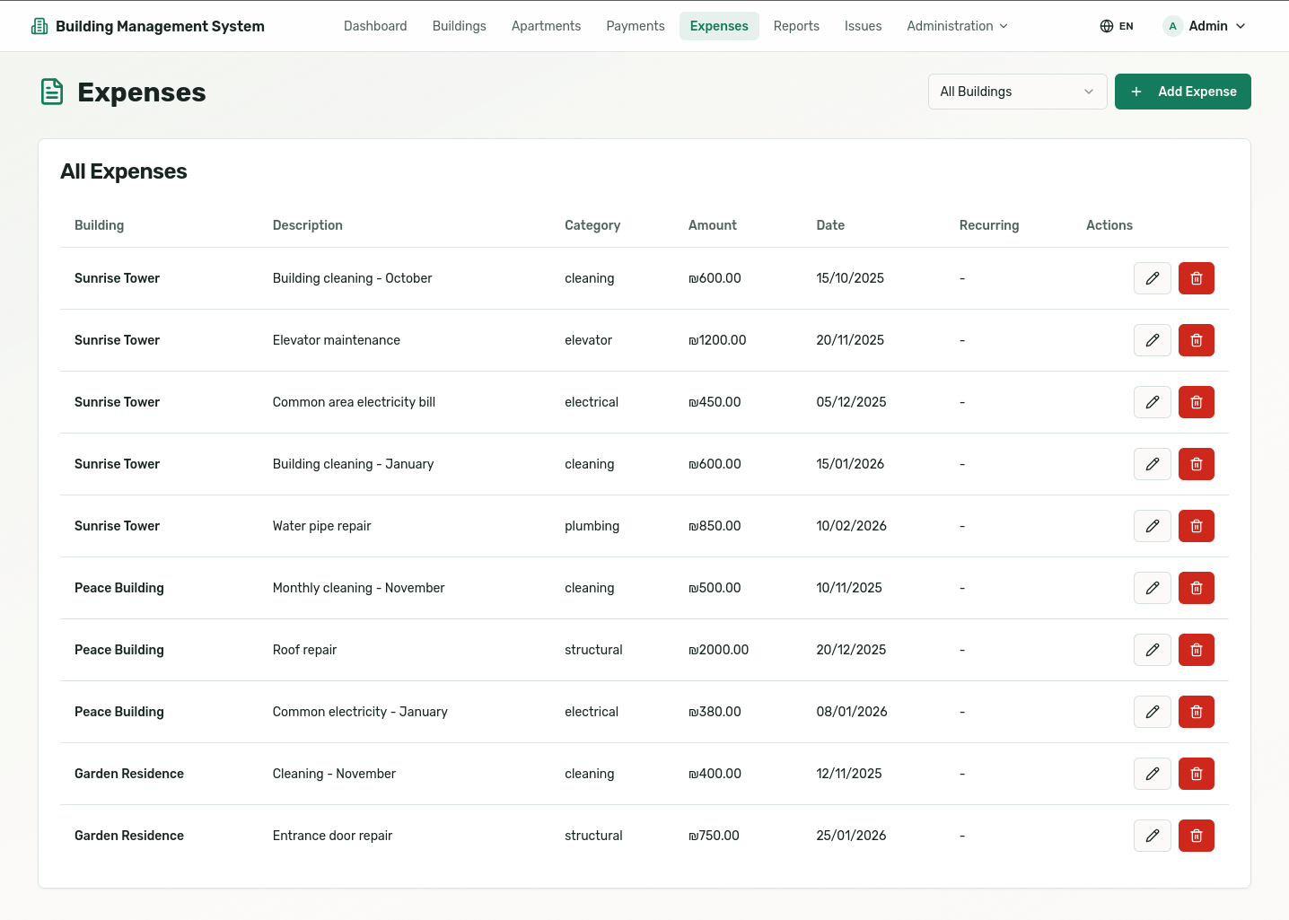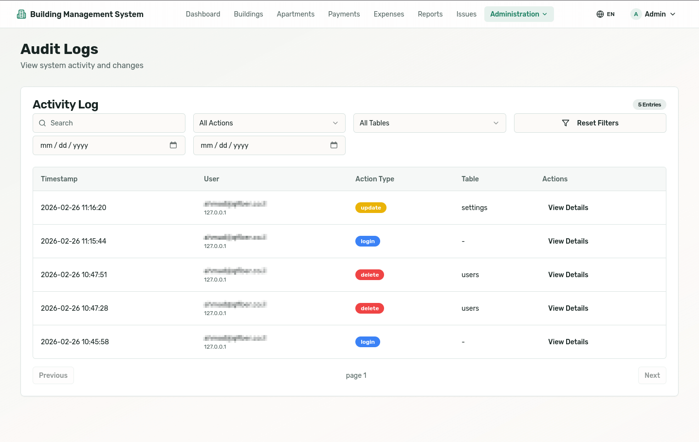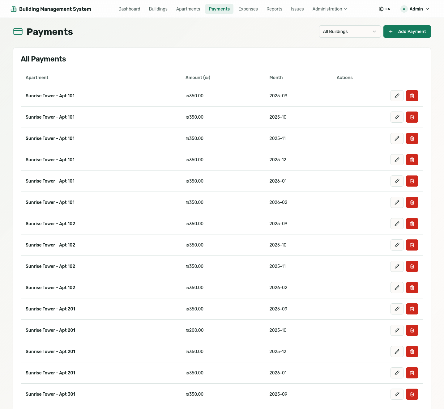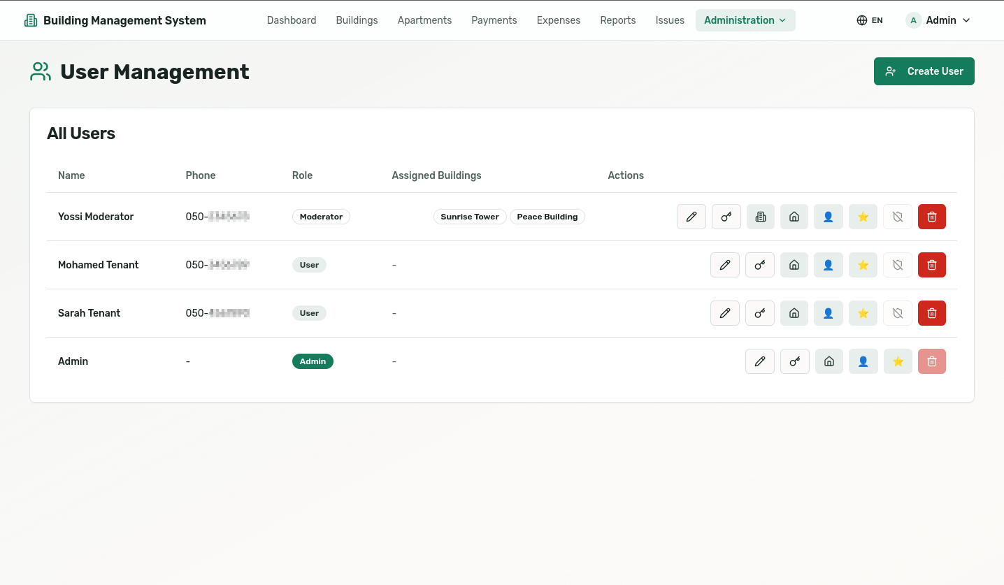 Managing residential or commercial properties doesn’t need to be messy or manual. This building management platform centralizes everything managers and residents need into one secure, easy-to-use system. It gives full visibility into your property portfolio, allowing you to register buildings and apartments, track occupancy, manage subscriptions, and monitor each unit’s financial status in real time.