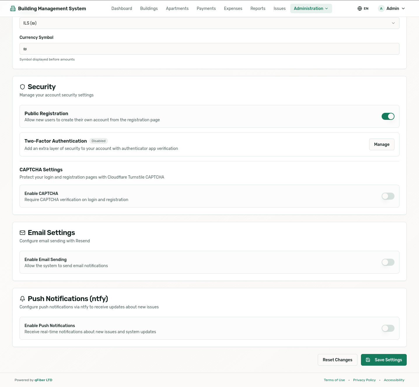 Payments and expenses are handled in one place, record tenant payments, log maintenance and utility costs, split expenses, and automatically calculate balances. Detailed financial reports help you understand cash flow and spot trends early. Security is built in with role-based access, two-factor authentication, and full audit logs. The platform also supports multiple languages and automated email notifications.